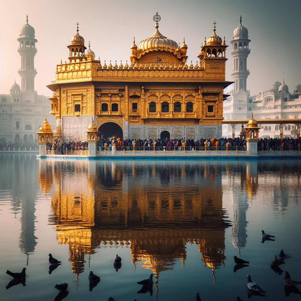 The Golden Temple, also known as Sri Harmandir Sahib, is a sacred Sikh shrine located in Amritsar, Punjab, India. Adorned with gold leaf and surrounded by a serene sarovar (pool of water), it is one of the most revered spiritual destinations in the world. The temple welcomes people of all faiths to partake in langar (community meal) and experience its message of equality and service. Its gleaming golden exterior and tranquil ambiance make it a beacon of peace and unity, drawing millions of pilgrims and tourists each year to bask in its divine aura.